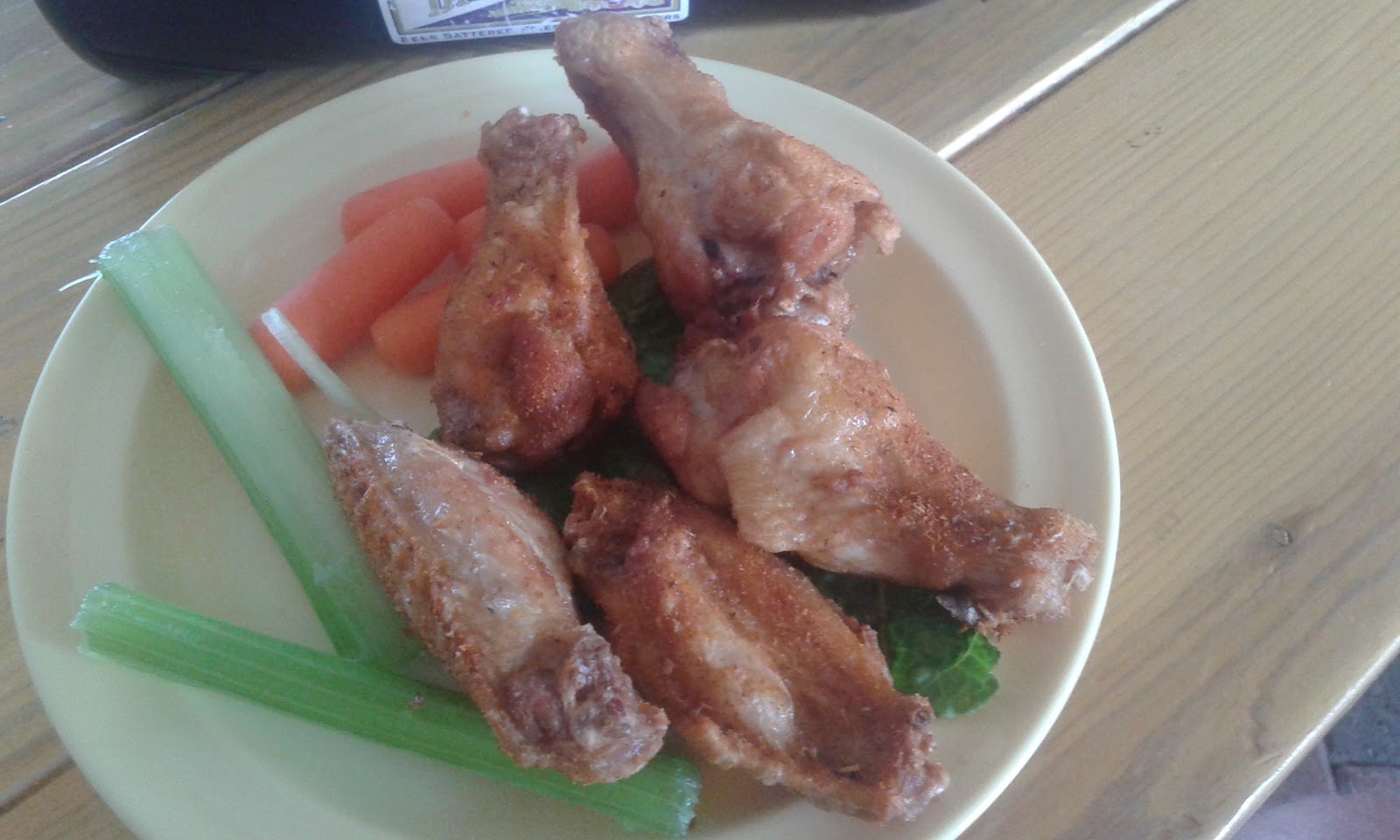 The wings were great. They asked if I wanted ranch or blue cheese but I declined. They still brought out carrots and celery with the wings.