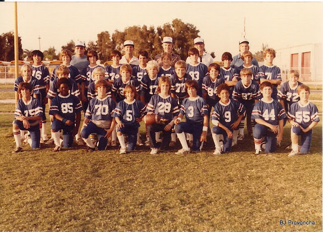For a while, I volunteered my time as a youth football coach. The first time was in 1981. Clay Hatley was the head coach and Fred Arnold and I (very middle) were two of the assistants. David Pitkethly is #44 in the front row. Back then we were called the Cowboys.