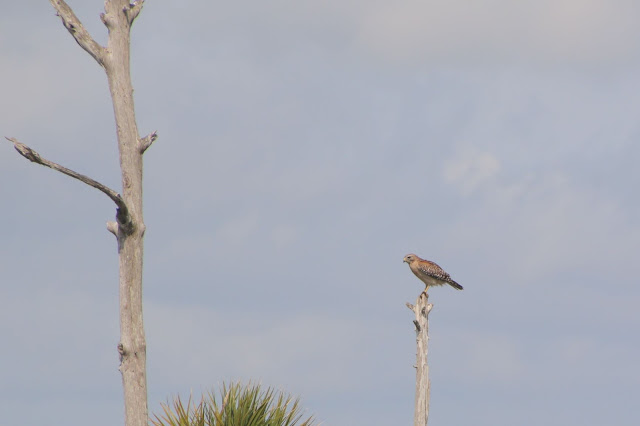 A red-shoulder Hawk was taking a break on one of the dead trees in the wetlands...